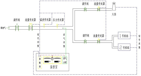 2、發(fā)電機組供氣管道的沼氣流量數(shù)據(jù)的監(jiān)測及記錄;