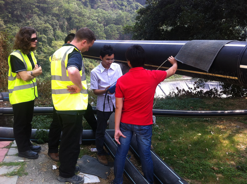 工作人員正在使用英國(guó)Geotech的新型便攜式沼氣分析儀 GA5000,分析管道中CH4,CO2,O2,H2S,CO濃度,同時(shí)進(jìn)行壓力、流量。